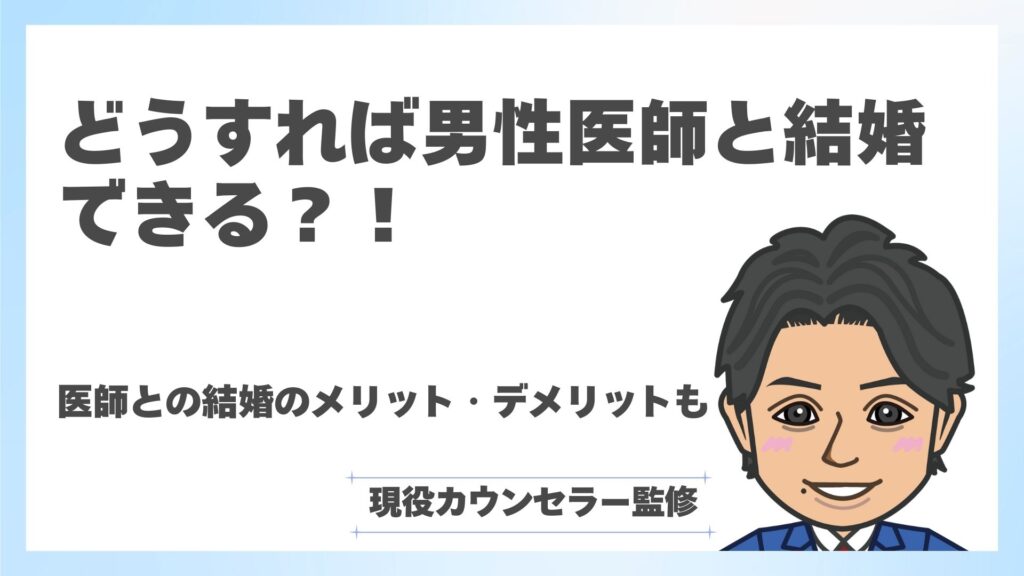 憧れの男性医師との結婚、夢見ていませんか? 「どうすれば出会えるの?」「何歳で結婚を考える?」そんな疑問を抱えているかもしれません。 この記事では、男性医師が結婚を考える年齢やきっかけ、そして知っておきたいメリット・デメリットまで、仲人の視点から徹底解説します。 経済力や安定性といった魅力がある一方で、見落としがちな現実もしっかりお伝えします。夢の結婚を現実にするために、この記事でメリット・デメリットをしっかり把握し、後悔のない未来へ一歩踏み出しましょう。 男性医師が結婚を考... -
