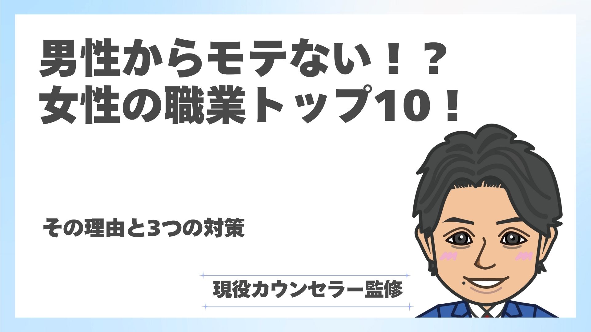 「私の仕事、男性からモテないって思われてるのかな…?」もしあなたがそう感じているなら、この記事はきっとあなたの力になります。 実は、男性が結婚相手として「ちょっと敬遠しがち」と感じる女性の職業には、ある共通の理由があります。 この記事では、その具体的な職業トップ10と、なぜそう思われるのかをプロの視点から解説。 そして、どんな職業の女性でも、自信を持って婚活を成功させるためのとっておきの対策を3つご紹介します。 男性が敬遠しがちな女性の職業TOP10 「男性からモテない職業」という言葉... -