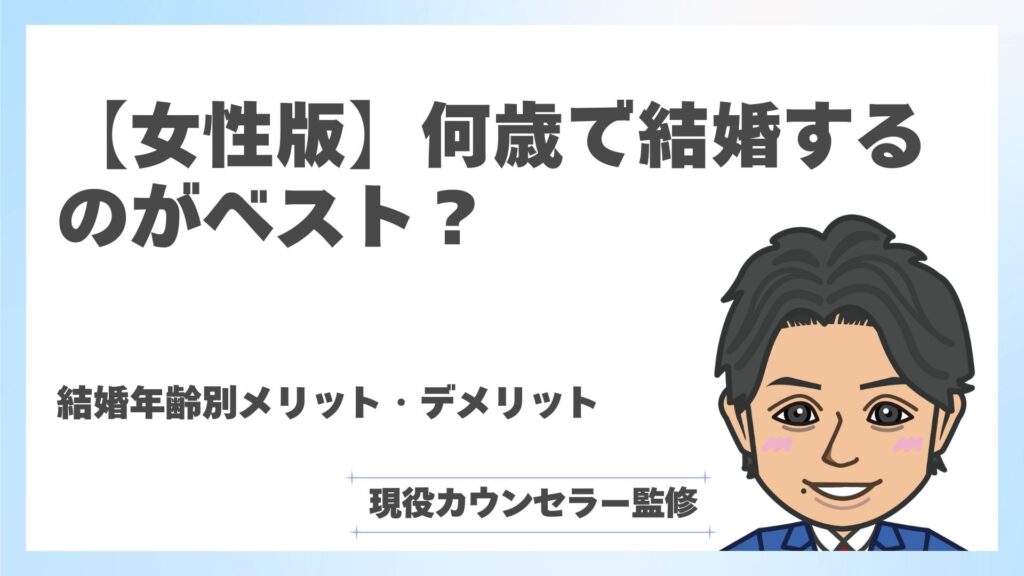「何歳で結婚するのが一番幸せになれるの?」そんな疑問を抱えていませんか? 女性にとって、結婚は人生の大きな節目。子どもを望む時期やキャリアプラン、転職のタイミングなど、結婚を考えるキッカケは人それぞれですよね。 この記事では、20代から40代まで、年齢ごとの結婚のメリット・デメリットを具体的に解説し、最新の平均初婚年齢といった統計データも交えながら、あなたの「ベストな結婚年齢」を見つけるヒントをお届けします。 女性が結婚を考える3つのキッカケ 女性にとって結婚は、人生の大きな節目と... -