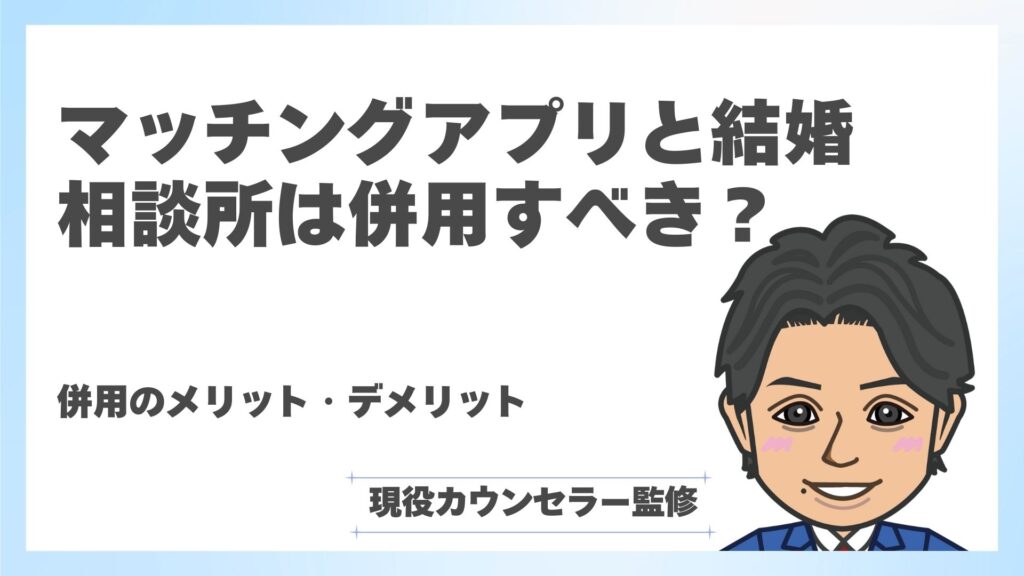 「マッチングアプリと結婚相談所、併用したらもっと早く結婚できる?」そうお考えではありませんか? 多くの婚活者を見てきた私が、その疑問にズバリお答えします。 この記事では、マッチングアプリと結婚相談所それぞれの特徴から併用するメリット・デメリット、そして知っておくべき注意点を徹底解説。読み終える頃には、あなたの婚活に最適な道筋が見えてくるはずです。 マッチングアプリの特徴 まず、併用するかどうかを考える前にそれぞれのサービスの特徴をみていきましょう。 会費が安い マッチングアプリ... -