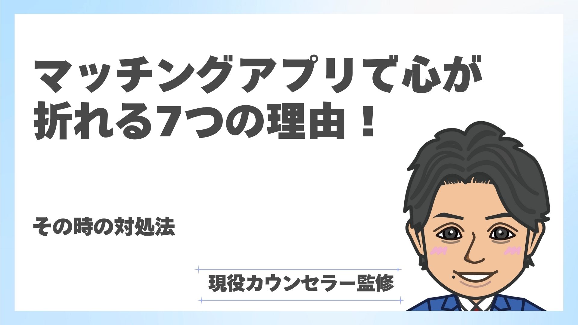 マッチングアプリを利用していると、心が折れそうになる瞬間は誰にでも訪れます。