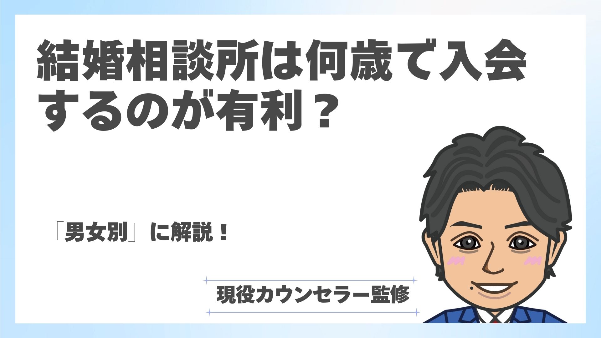 「結婚相談所って何歳から利用できるの?」「自分にとって最適な年齢はいつ?」そんな疑問をお持ちではありませんか? この記事では、結婚相談所の年齢制限はもちろん、20代から50代までの「年齢別」入会理由、そして「男女別」に婚活が有利に進みやすい年齢をプロの視点で徹底解説します。 年齢だけで有利不利が決まるわけではありませんが、あなたの婚活を成功させるヒントが満載です。 結婚相談所は何歳から利用できる?年齢制限は? 結婚相談所の利用を検討されている方にとって、まず気になるのが「何歳から... -